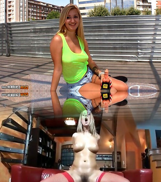 Uber-cute puffy nips on a nice blondie railing humungous hard-on